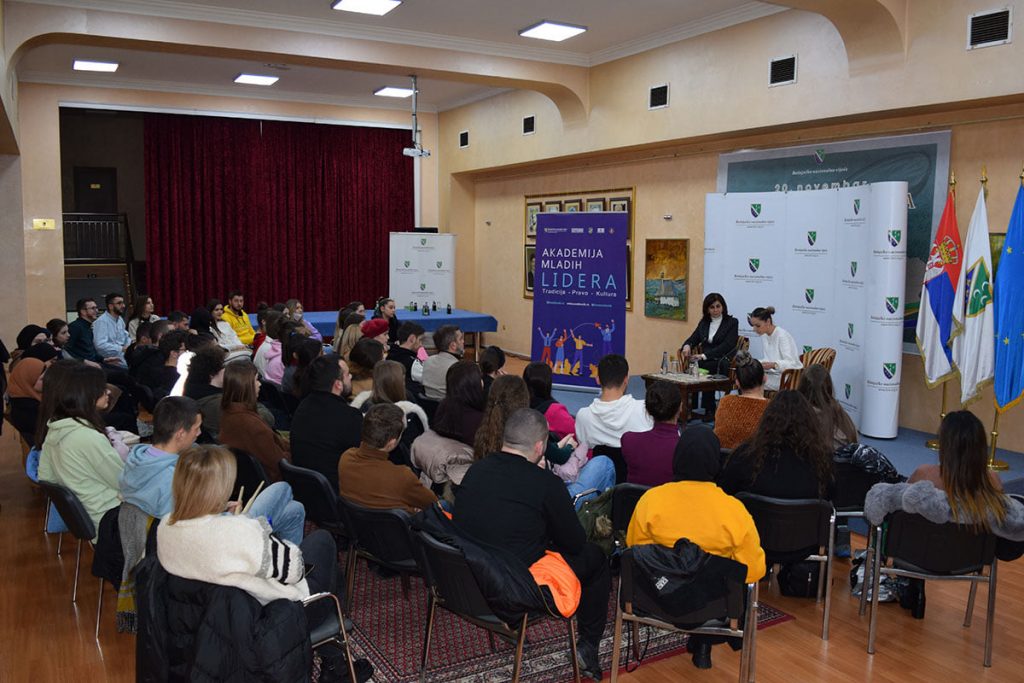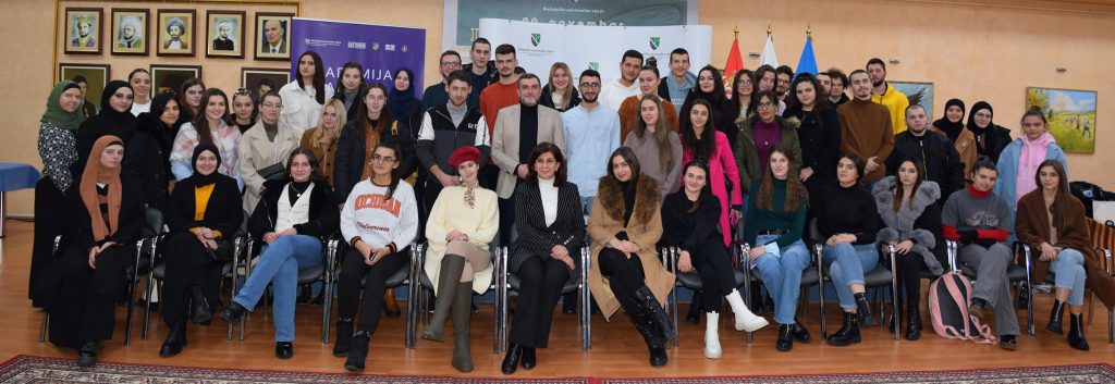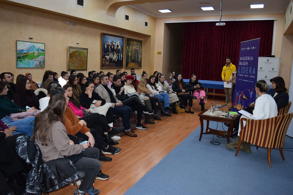 U okviru projekta “Akademija mladih lidera” koji sprovodi NVO „Svetionik“, večeras je u Bošnjačkom nacionalnom vijeću organizovana radionica, razgovor polaznika ove akademije sa predsjednicom Vijeća, dr. Jasminom Curić.Polaznici ove edukativne škole imali su priliku da se kroz dijalog, pitanja i razgovor više upoznaju sa radom Vijeća, njegovim ovlaštenjima kao i aktivnostima koje Vijeće sprovodi u cilju unapređenja položaja i prava Bošnjaka u Republici Srbiji.Ova Akademija ima za cilj da okupi perspektivne studente i mlade ljude iz Sandžaka sa željom da učesnicima proširi polja spoznaje i interesovanja, ponudi podsticajne radionice i debate ali i otvori nove, životno aktuelne teme.Akademija mladih lidera je koncipirana kao platforma koja nudi širok spektar znanja iz različitih oblasti kao što su prava, historija, politika, religija, umjetnost, kultura, tradicija i književnost Bošnjaka.Program podrazumjeva održavanje predavanja, radionica, i javnih tribina na kojem su učešće uzeli brojni stručnjaci iz različitih oblasti.Projekat „Akademija mladih lidera“ je podržan na Javnom konkursu Bošnjačkog nacionalnog vijeća za dodjelu sredstava iz budžeta za podsticanje projekata od opšteg interesa Bošnjaka koje realizuju fizička i pravna lica za 2021. godinu.