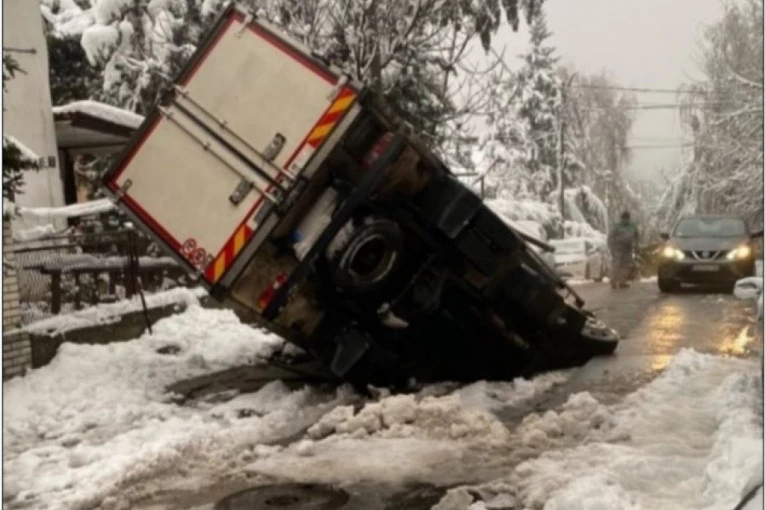 Na Instagramu se pojavio i video snimak na kojem se vidi da je kamion upao prednjim točkovima u rupu.