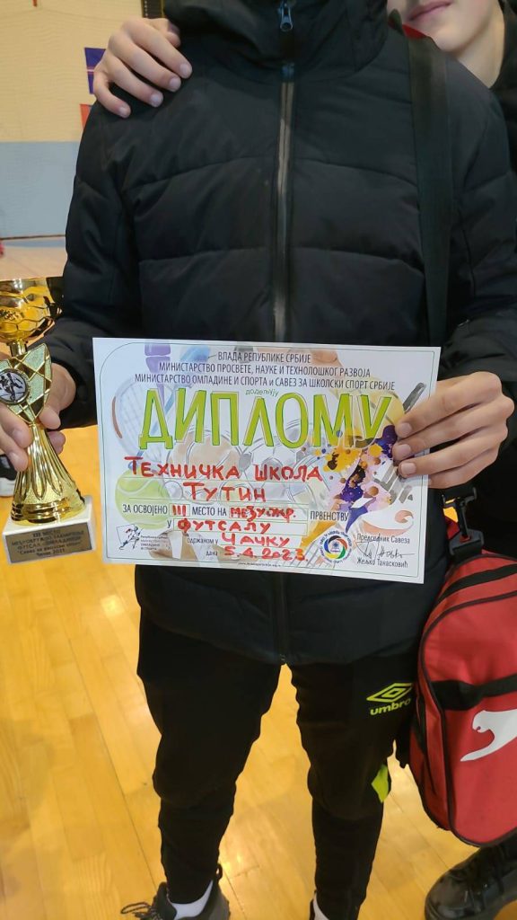 Danas (05.04.2023)smo imali učesnike nase Opstine na medjuokruznom takmičenju u futsalu.Na održanom takmičenju u Čačku srednjih škola, učenici “Tehnicke” Tutin su izgubili nesrecno u polufinalu od ucenika iz Cacka,i na kraju osvojili veliko 3 mesto pobedom protiv ucenika iz Pozege.U ime Saveza Tutin vam se zahvaljujemo na ucescu i sto ste predstavljali svoju Opstinu,Savez i naravno svoju skolu.Veliko hvala.Vas Savez Tutin .