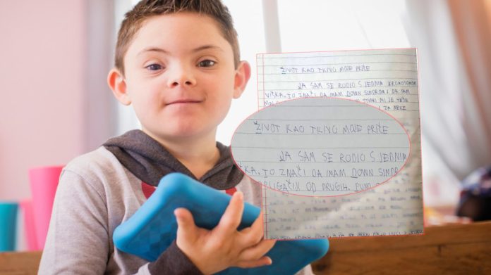 - Rođen sam sa jednim viškom hromozoma. To znači da imam Daunov sindrom i da sam malo drugačiji od drugih. Mnogo stvari mi je teže od drugih. Moram više da radim i za neke stvari mi je potrebna pomoć – Dominik je napisao u svom zadatku pod naslovom “Život kao tkivo moje priče”.