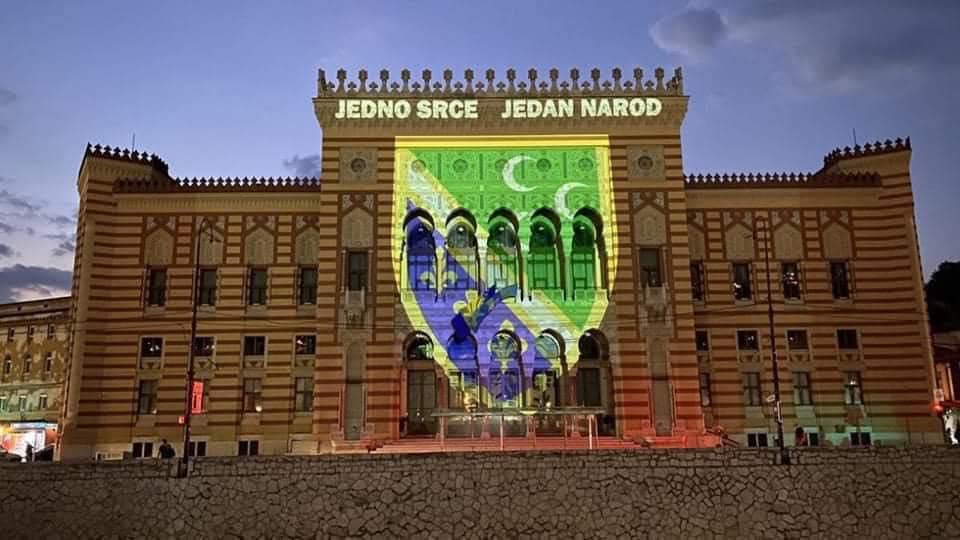 Sarajevo-Vijećnica u bojama zastave Bošnjaka Sandžaka: Jedno srce-jedan narod