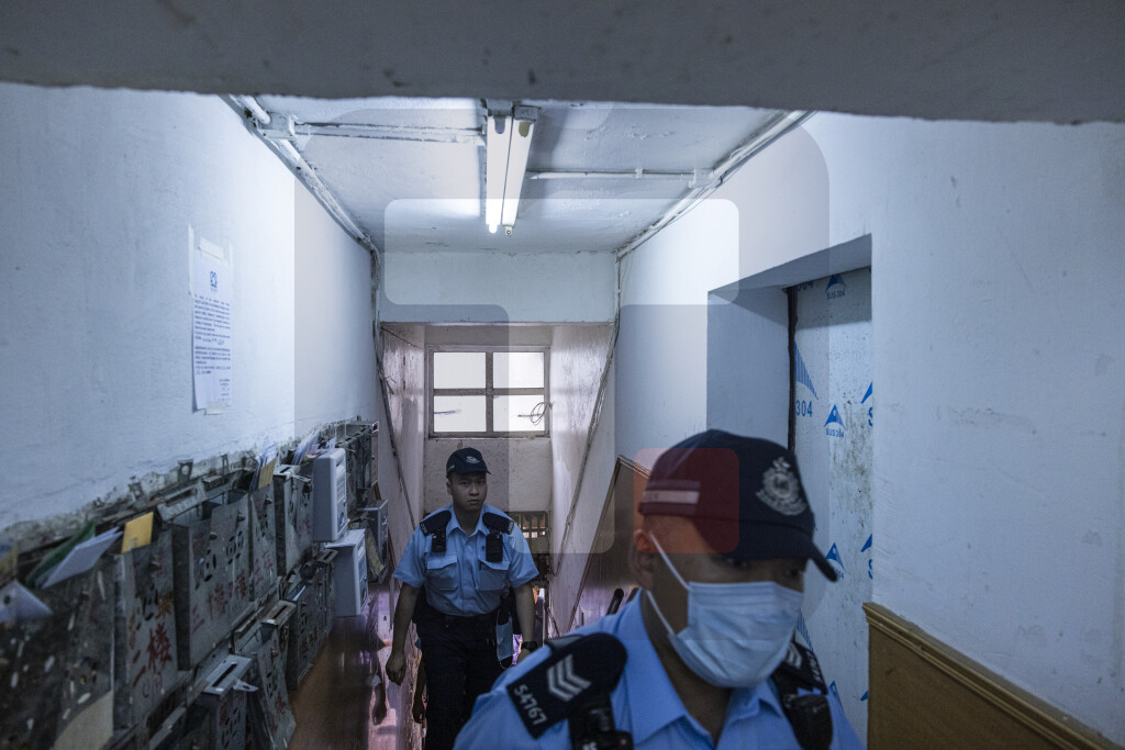 Police officers walk up an apartment where three children were killed in Sham Shui Po in Hong Kong, Monday, June 5, 2023. Hong Kong police arrested a woman accused of killing her three young daughters on Monday in a case that has shocked many in the city, where violent crime is rare. (AP Photo/Louise Delmotte)