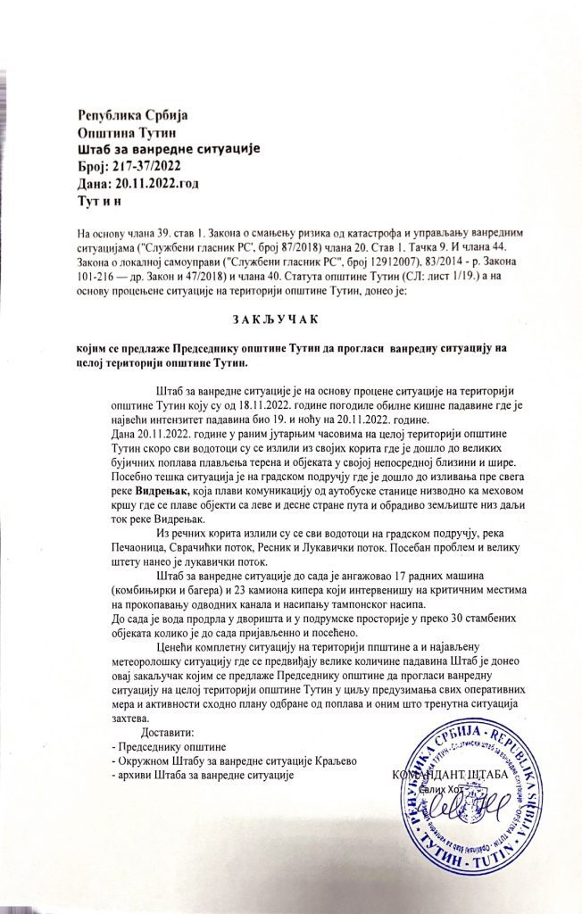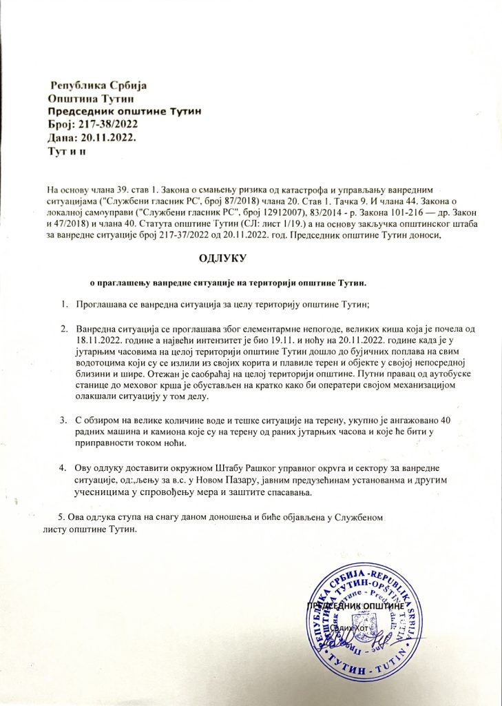 (VIDEO) U Tutinu proglašena vanredna situacija